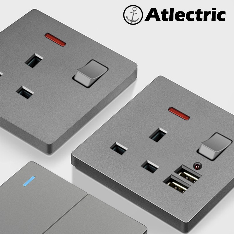 Atlectric UK Standard Power Socket Double Socket With Dual USB Charging